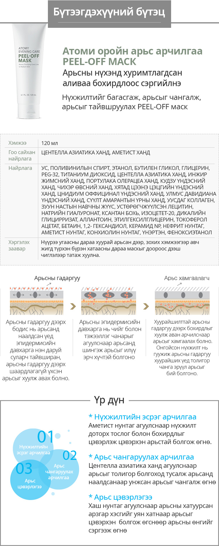 - Та үйлдвэрийн алдаатай эсвэл тээвэрлэлтийн явцад гэмтсэн бүтээгдэхүүн хүлээж авсан тохиолдолд ажлын 24 цагийн дотор манай хэрэглэгчид үйлчлэх төвийн +976-7744-8580 утас болон atomy_mn@atomypark.com хаягаар “Бүтээгдэхүүн буцаах/Солих хүсэлт (MN-07-01)” формыг бөглөн хүсэлтээ илгээнэ.