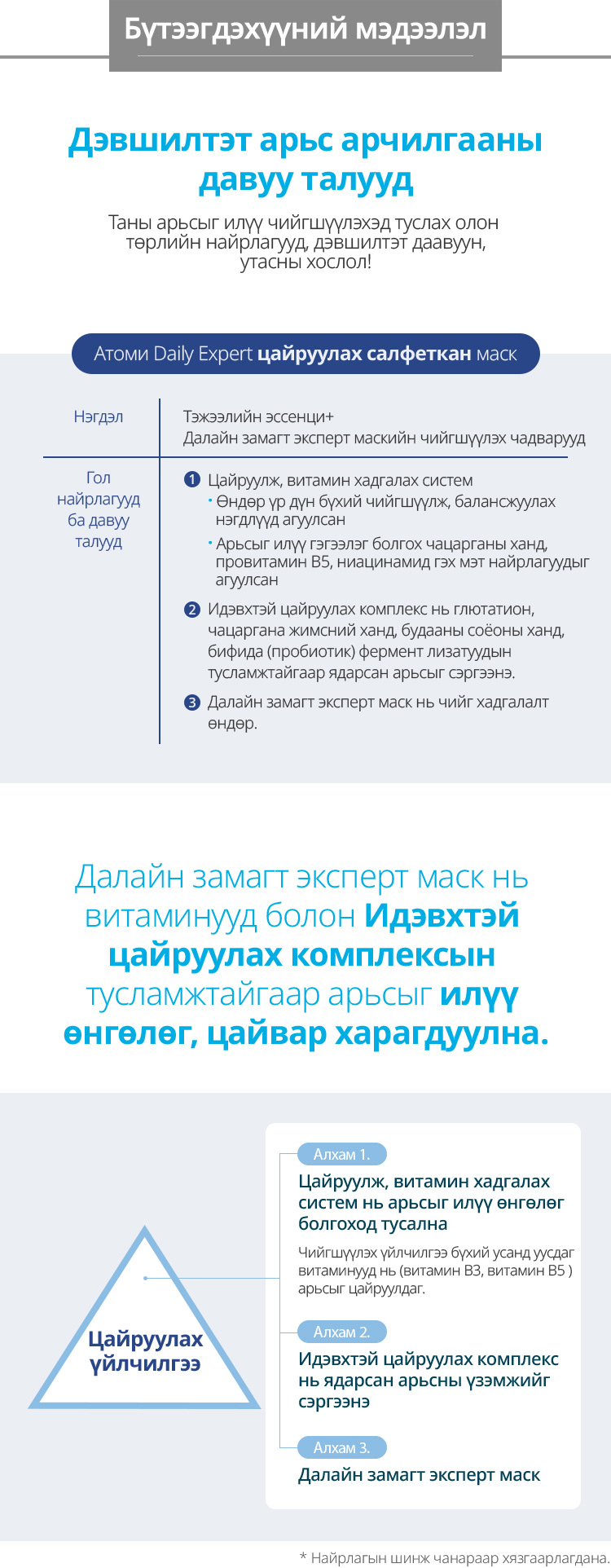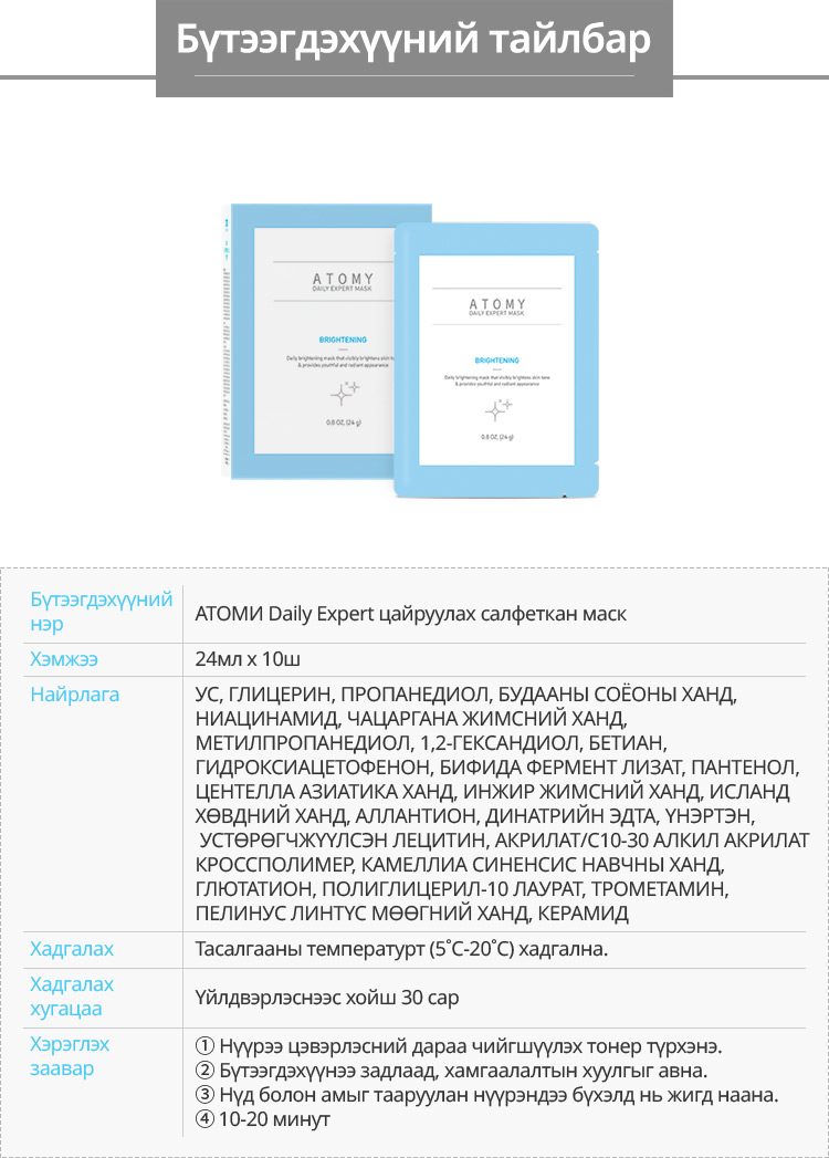 - Та үйлдвэрийн алдаатай эсвэл тээвэрлэлтийн явцад гэмтсэн бүтээгдэхүүн хүлээж авсан тохиолдолд ажлын 24 цагийн дотор манай хэрэглэгчид үйлчлэх төвийн +976-7744-8580 утас болон atomy_mn@atomypark.com хаягаар “Бүтээгдэхүүн буцаах/Солих хүсэлт (MN-07-01)” формыг бөглөн хүсэлтээ илгээнэ.