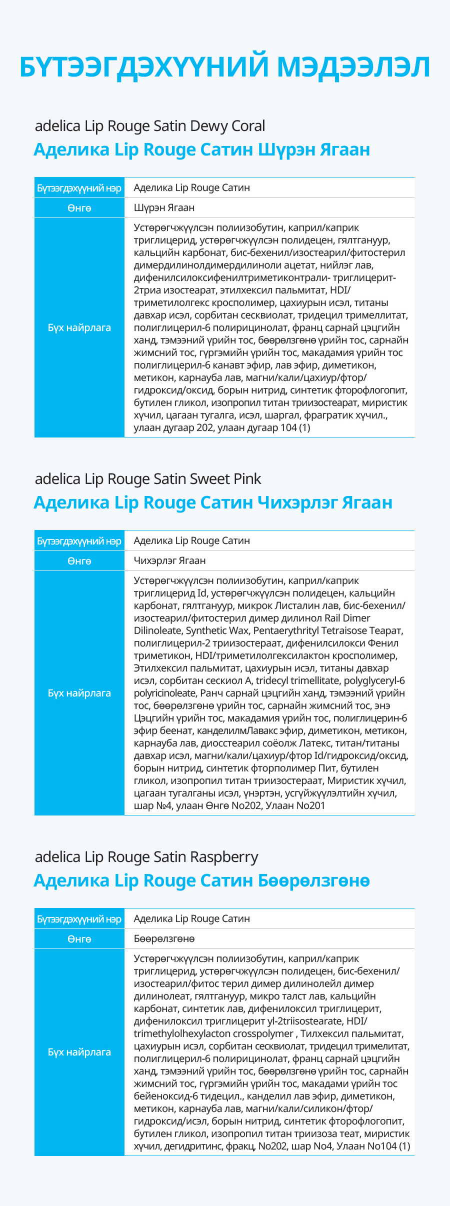 Бүтээгдэхүүний үндсэн мэдээлэл